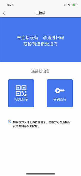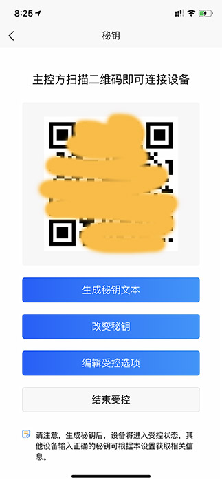 设置简洁、连接方便,只需生成秘钥,便可从其他设备使用APP通过秘钥连接。